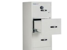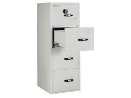 Hängande arkivskåp, Gunnebo Fire File 25". Brandsäkert hängande arkivskåp med nyckellås. Professionell förvaring av viktiga dokument. Skåpet har 4 lådor med högkvalitativa kullagrade glidskenor som ger smidig utdragning och full tillgång till innehållet. En "day-catch" låsfunktion säkerställer att även olåsta lådor är skyddade mot brand. Skåpen är testade och certifierade med en timmes brandskydd av dokument i enlighet med UL Standard 72, CLASS 350. Skåpets låga vikt reducerar transport- och installationskostnader. Gunnebo säkerhets- och brandskåp levereras till sidew[...]