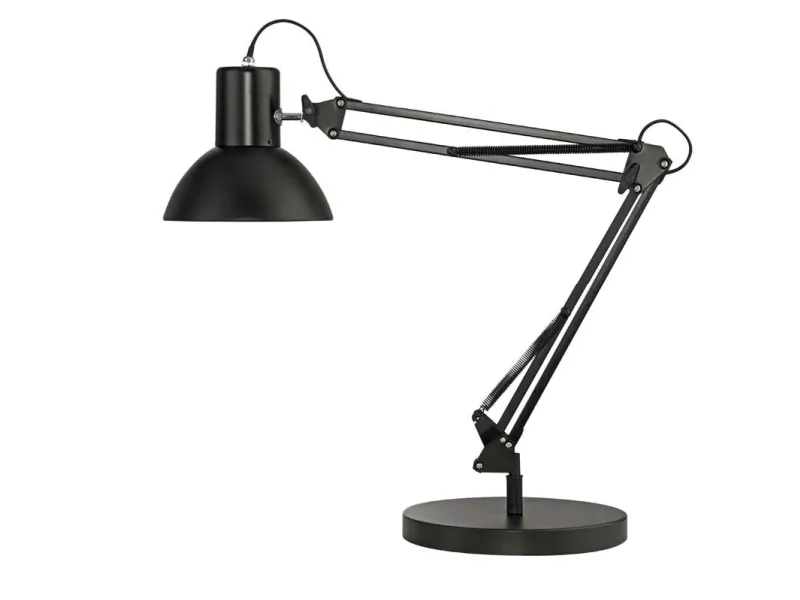 Success is the simple and functional anglepoise lamp for your working table or desktop. The parallel, spring-loaded arm makes it easy to adjust the lamp and keeps the lamp head parallel with the desktop. On/off button on the cable. Good light reflection thanks to the inner coating of the lamp head. E27 socket, Max 11 W – comes with tabletop base and table clamp.