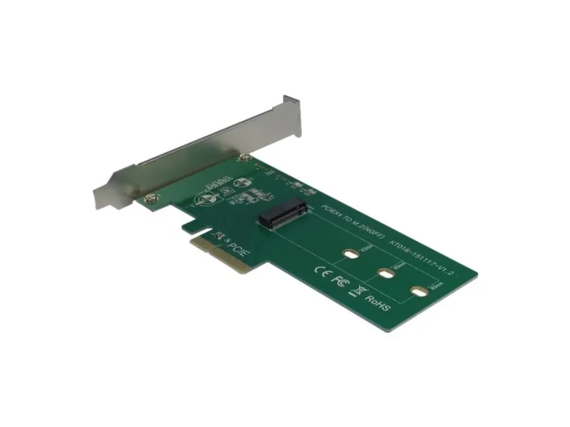 The KT016 Adapter enables connecting a M.2 PCIe SSD (42/ 60/ 80mm) additionally. The connection between adapter and computer is made by PCIe X4 interface which enables a super-fast data transfer of 32Gbit/s for the PCIe SSD! Just fix the SSDs on the adapter and mount it in a free slot. The scope of delivery includes mounting screws as well as a small screwdriver.