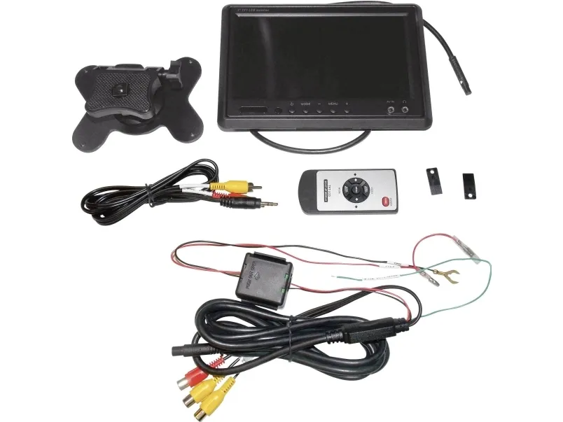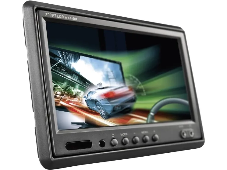 renkforce T-701B 17,8 cm (7) skærmSpejling af skærmbilledet (for eksempel til brug af bagudvendt kamera) · Drejning af skærmbilledet (hvis skærmen monteres hængende) · Skift mellem 4:3 og 16:9 · Billedrotation · TFT-skærm · PAL/NTSC · OSD · Indbyggede højtalere · Tilslutning til hovedtelefoner. Indbygningsfarveskærm til nakkestøtte. Genial skærm med mange anvendelsesmuligheder. Om det er til bil eller campingvogn, er det altid muligt at finde plads til denne drejelige skærm. 17,8 cm (7) LC-display LCD-skærm, der kan indbygges eller stå frit Fjernbetjening Inkl. fodLCD-skærm, der kan indbygges eller stå frit for eksempel som hovedstøtte. · Drejning af skærmen · Inkl. fjernbetjening · Inkl. fod · Indbygget højtaler · Tilslutning til hovedtelefoner.