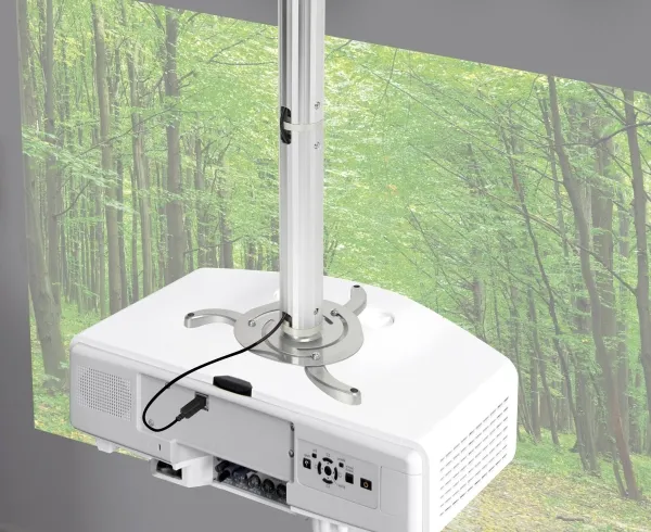 muligSpeaKa Universal projektorloftholderen udmærker sig ikke kun ved den høje fleksibilitet, men også med det elegante design. Et sandt blikfang der passer universelt til næsten enhver projektor. Ved hjælp af den indbyggede kabelføringssystem kan der derudover skjules strøm- og tilslutningskabler. Dermed er holderen det ideelle projektortilbehør til hjemmebiografen, auditoriet, kontor, detailhandel, videokonferencer og andre erhvervsanvendelser.