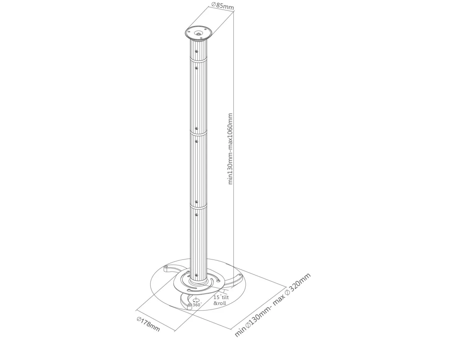 SpeaKa Professional projektor-loftholder, højdejusterbar 13 - 106
