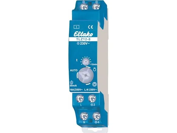 Eltako TLZ12-8. Type: Time switch, Number of poles: 1P, Product colour: Blue. AC input voltage: 250 V. Width: 18 mm, Depth: 58 mm