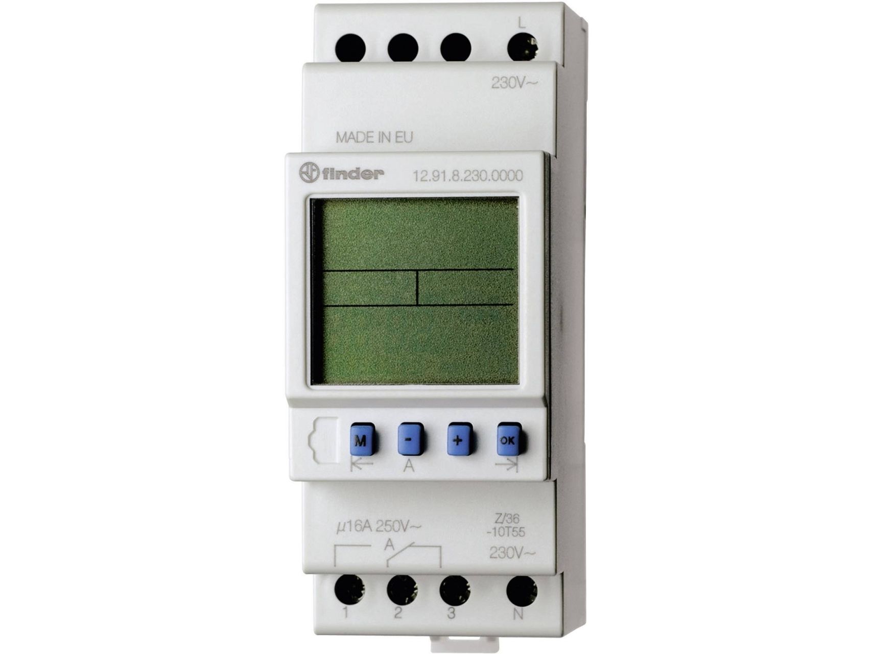 Finder 12.91.8.230.0000 timer för DIN-skena 230 V/AC dagsprogram