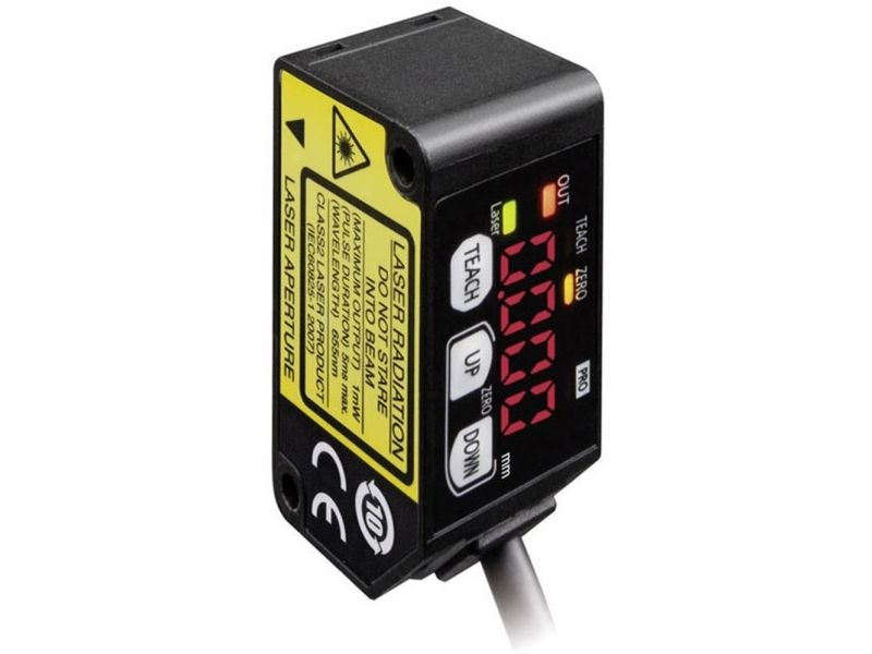 Optisk lasermätningssensor för exakta mätningar. Svarstid upp till 1,5 ms. Kompakt design med 20 x 44 x 25 mm. Enkel konfiguration av sensorn med tre funktionstangenter (Teach-funktion). Direkt visning av det uppmätta värdet på fyrsiffrig LED-display. Digital ingång för nollbalansering, Teach-funktion, laser ON/OFF eller trigger-funktion. Användningsområden: mätning av delar, avståndskontroll, tjockleksmätning, Planaritätsprüfung, process- och kvalitetskontroll (i tillverkningsprocessen, inline), test- och mätplatser. Ljus-ON eller Mörk-ON valbart Nyckelspärr möjligt kortslutningssäkert pressgjutet aluminium Digital och analog utgång (0-5V)