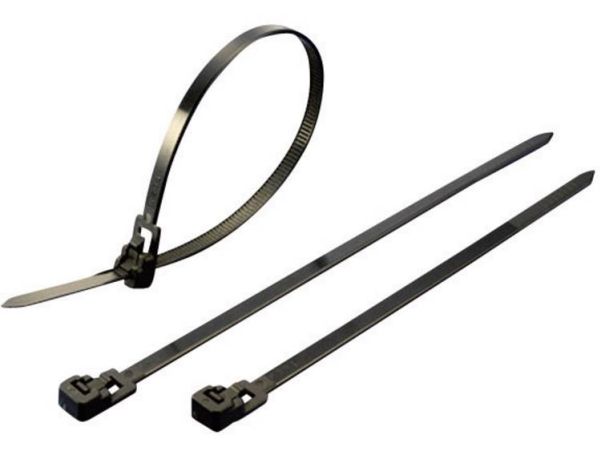 TRU COMPONENTS 1592882 TC-HVCR250BK203 Kabelbinder 250 mm 7.60 mm Sort Oplukkelig 100 stk