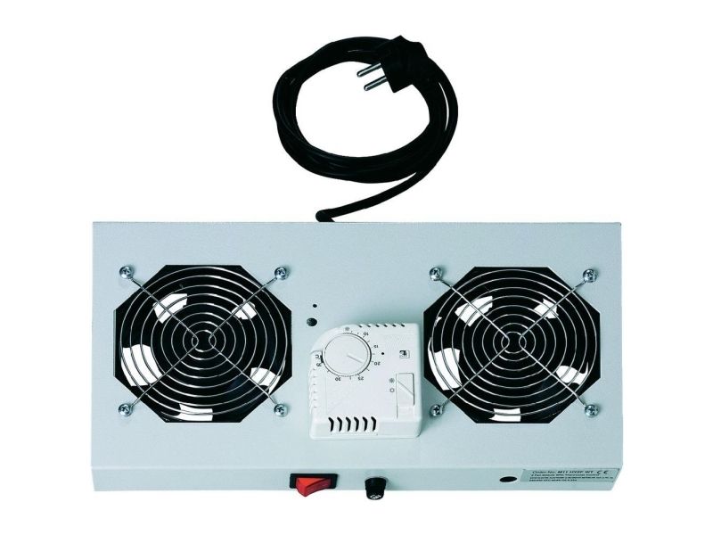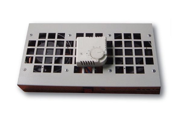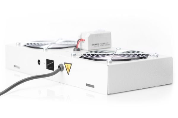 Roof-mounted fan units are suitable for all Unique series wall-mounted enclosures, as well as all network and server cabinets (EC). Installation in the roof module is quick and easy. A switch and adjustable thermostat ensure optimum adaptation options. The model is available in the standard colors gray (RAL 7035) and black (RAL 9005), with two integrated fans.