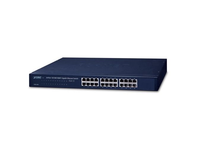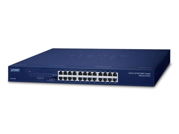 PLANET GSW-2401 Gigabit Ethernet Switch provides 24 RJ45 10/100/1000Mbps ports for high-speed network connectivity. It can automatically identify and determine the correct transmission speed and half/full duplex mode of the attached devices with its 24 Gigabit ports that support 9K jumbo frame feature. Therefore, the GSW-2401 can handle extremely large amounts of data transmission in a secure topology linking to a backbone or high-power servers.
