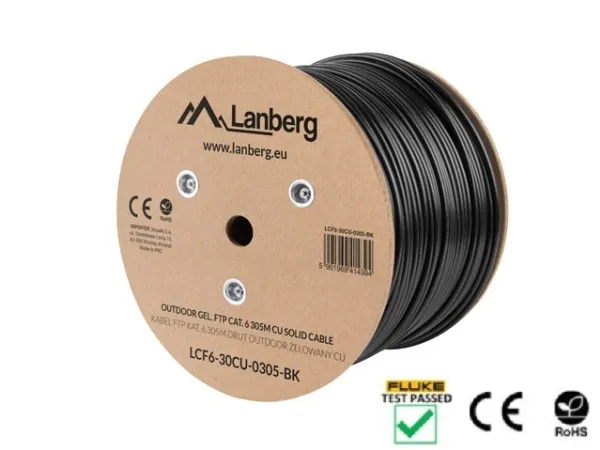 The Lanberg CAT 6 bulk cable is designed to meet the demands of modern networking infrastructure. With its 23 American Wire Gauge (AWG) thickness and FTP technology, it ensures reliable data transmission up to 250 MHz. The cable's construction includes a durable PVC/PE jacket that protects against physical damage and supports a wide operating temperature range from -20°C to 70°C, making it versatile for various environmental conditions. Compliance with ANSI/TIA/EIA 568 and ISO/IEC 11801 standards attests to its quality and reliability. Suitable for both commercial and residential use, this cable is engineered to provide a dependable network connection over time.
