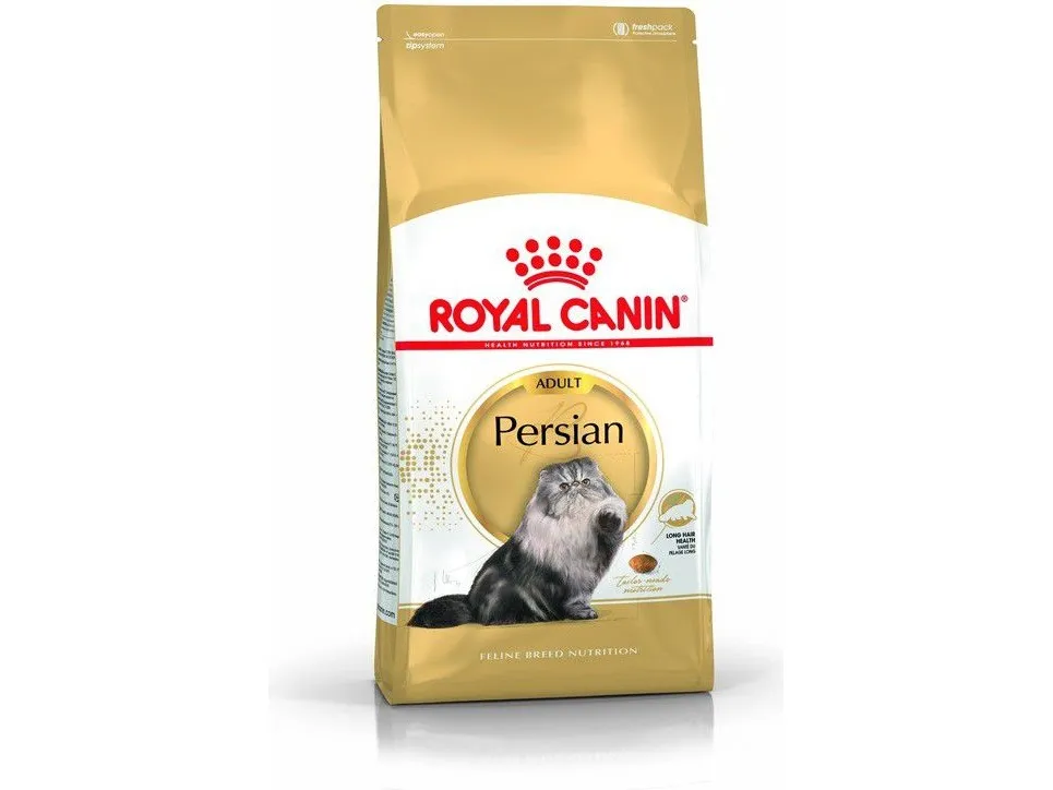 Persian cats over 12 months old.\n\nSpecial brachycephalic jaw\nThis specially designed almond-shaped kibble with an optimal contact surface area is easy for the Persian cat to pick up and chew.\n\nLong hair health\nAn exclusive complex of nutrients helps support the skin’s “barrier” role, and helps maintain skin health and coat beauty. Enriched with Omega 3 and Omega 6 fatty acids.\n\nHairball reduction\nA specific blend of fibres (including psyllium rich in mucilage) helps to naturally stimulate intestinal transit, eliminate ingested hair and control hairball formation.\n\nDigestive performance\nHighly digestible protein (L.I.P.*) and prebiotics to help support a balance in the intestinal flora. *Protein selected for its very high digestibility.\n\nUrinary health\nFormulated with a balance of minerals to help maintain the health of an adult cat’s urinary system.