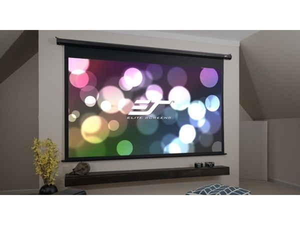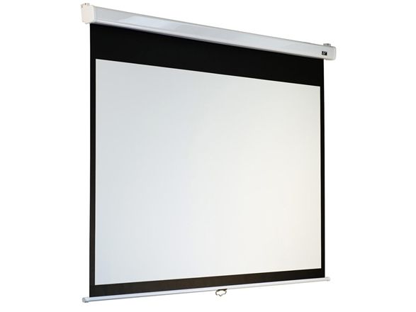 Elite Manual är en kostnadseffektiv infällbar frontprojektionsduk med dubbla höljen för installation på vägg eller i tak.