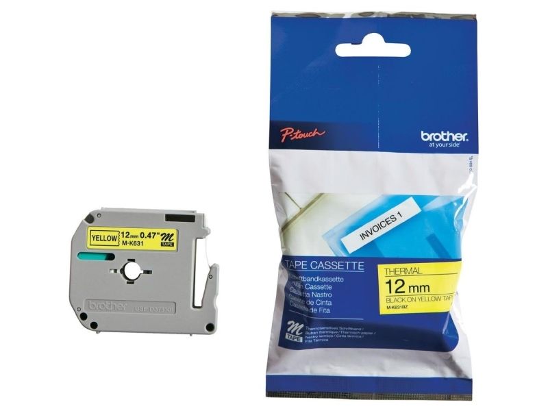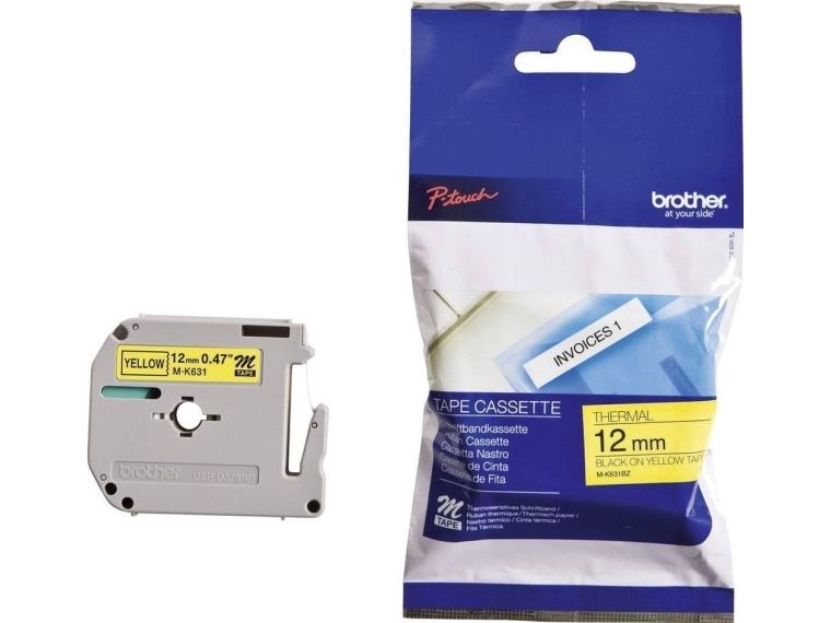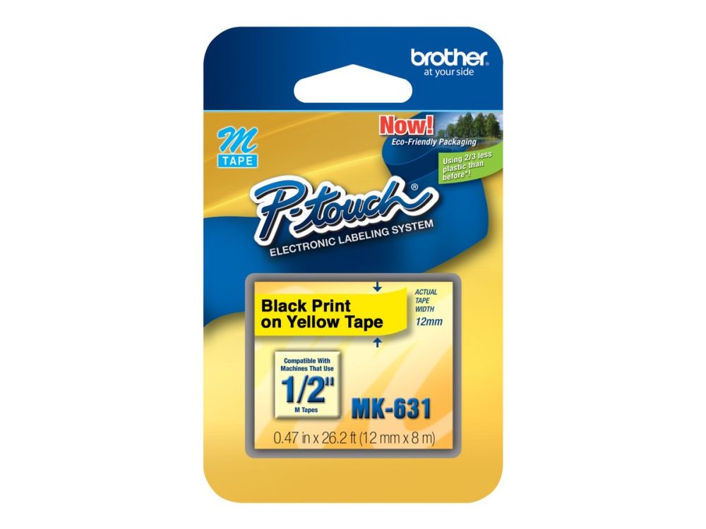 Brother MK631 - Svart på gult - Rulle (1,2 cm x 8 m) 1 kassett(er) ej laminerat band - för Brother PT-45; P-Touch PT-100, 110, 45, 55, 65, 70, 75, 80, 85, 90