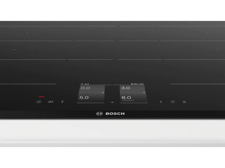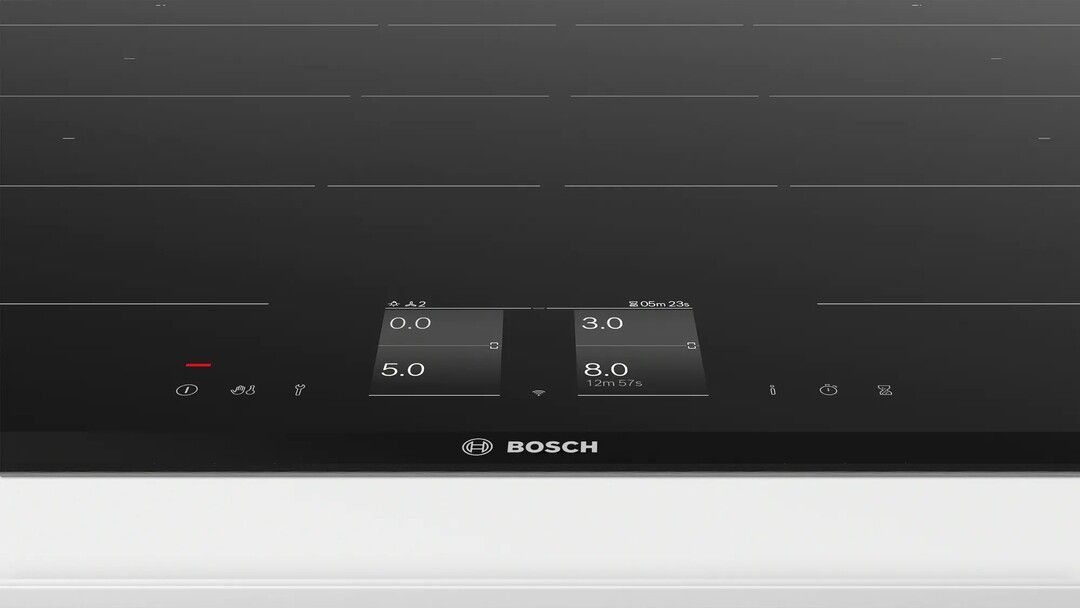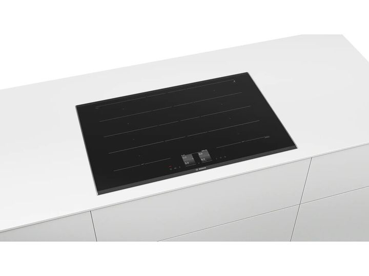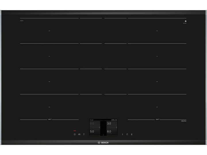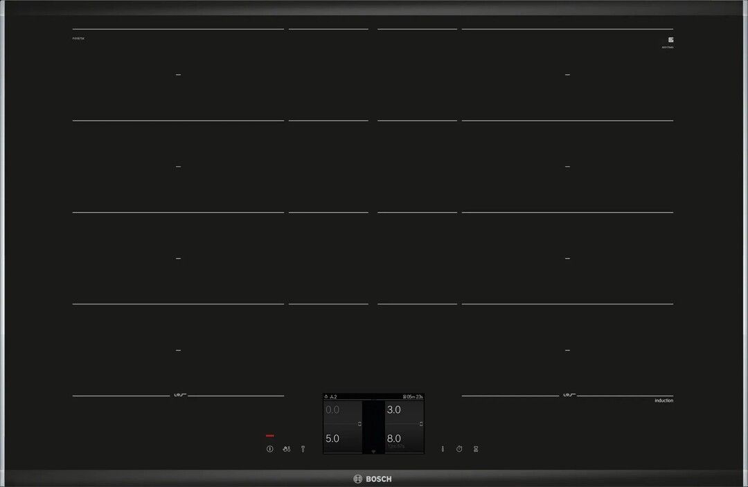 Bosch Serie | 8 PXY875KW1E induktionshäll - 80 cm - svart - keramik facetterade fram- och bakkantslister, - med sidokanter i rostfritt stål