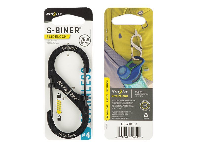 Organize, connect, carry, and keep your valuables extra secure with S-Biner Slide Lock Double-Gated Carabiner. Made of high quality stainless steel, each S-Biner SlideLock features two simple, innovative plastic sliders that, when slid into correct placement, keep the gates securely closed. Your S-Biner SlideLock will stay firmly locked until you choose to unlock it, allowing for simple and secure linking, attaching, and carrying. Each gate can be independently locked for convenient access. Available in two sizes (#2 and #4) for small-to-larger tasks.
