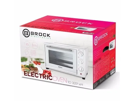 Brock Electronics TO 3001 WH. Oven net capacity: 30 L, Product colour: White, Control type: Rotary. Oven power: 1500 W, AC input voltage: 220 - 240 V, AC input frequency: 50 - 60 Hz