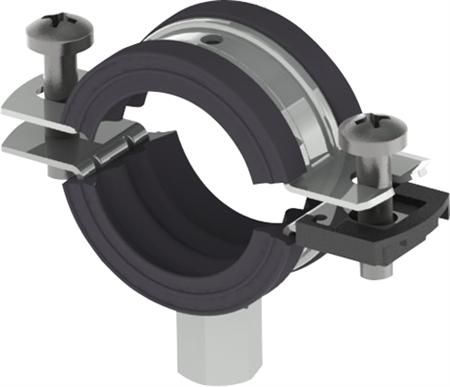 rörhängare med 2 skruvar och kombigänga i galvaniserat stål 1.0332, för upphängning av stålrör i torra inomhusmiljöer. Ljudisolerande EPDM upp till 22 dB(A) enligt DIN 4109. Max. statisk belastning (Fa,Z) 1.000 Newton
