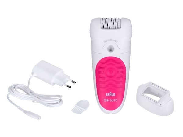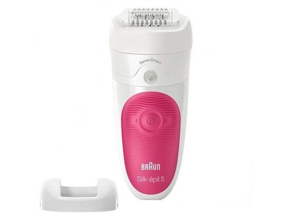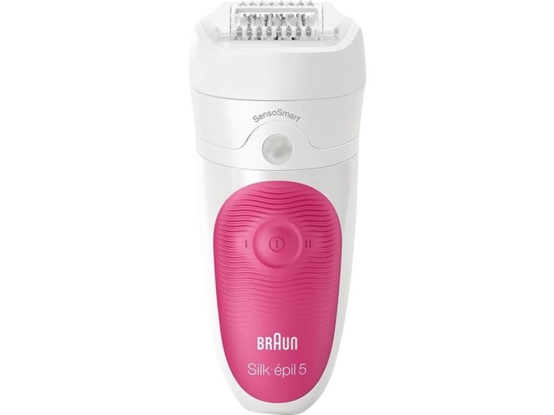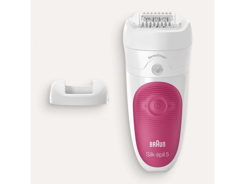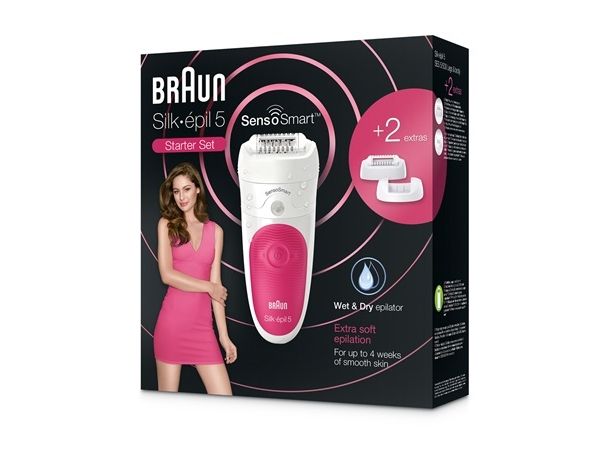 Braun Silk-épil 5 Wet & Dry Epilation Starter Set removes the short hairs waxing cannot catch, for long-lasting smooth skin for up to 4 weeks. Ideal for new users, the innovative SensoSmart technology guides your epilation so you use the right pressure, removing even more hairs in one stroke¹. Cordless and 100% waterproof, the epilator can be used in the bath or shower for gentle hair removal. With 2 extras; including massage rollers and skin contact cap.