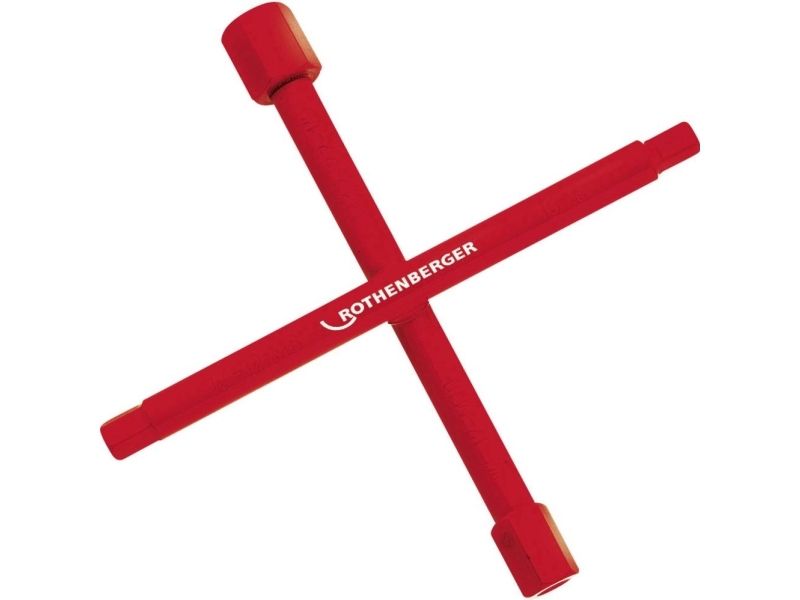 Use the sanitary four way key for tighening and loosening screws and nuts. Heating valves as well as wash basin fittings can easily be installed and removed.