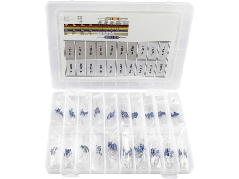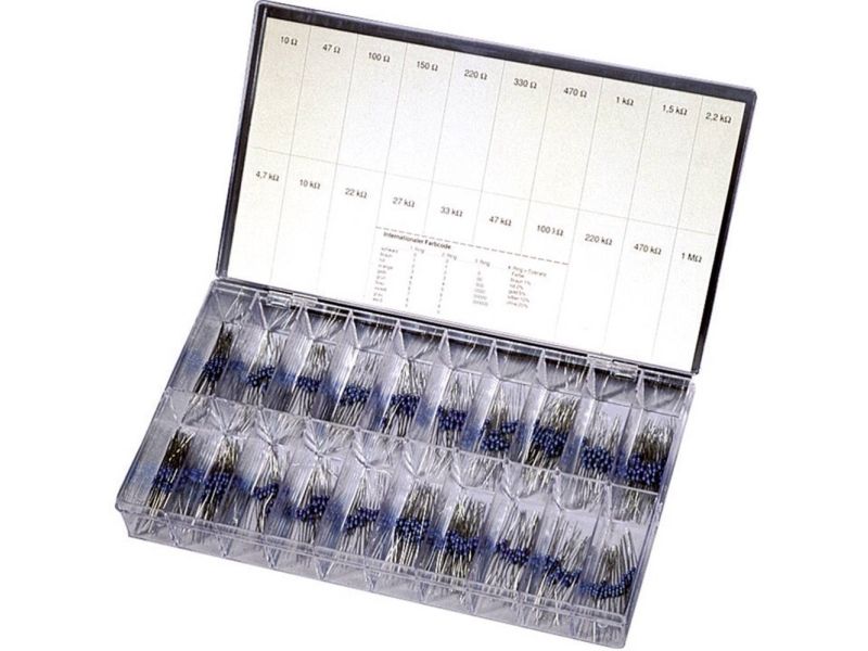 TRU COMPONENTS 418714 metallmotstånd sortiment med axial tråd 0.25 W 1 % 390 st