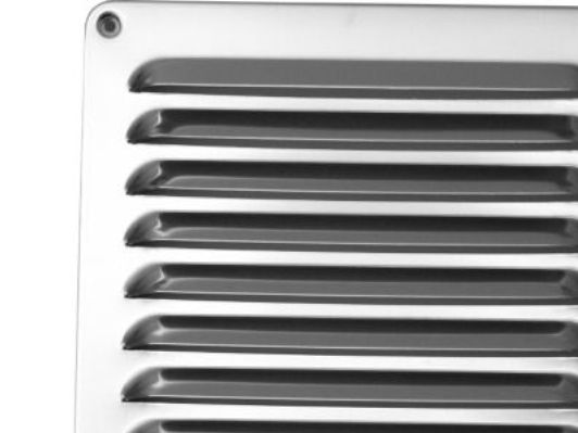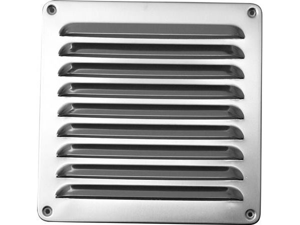 Metallgaller med skruvhål utan dubbar. 195x195 mm alu. Med nät. Fri yta 82cm2.