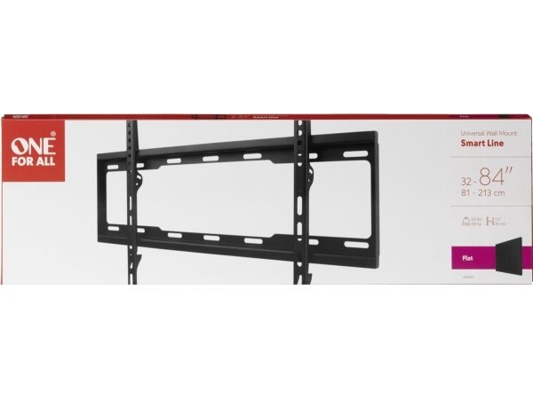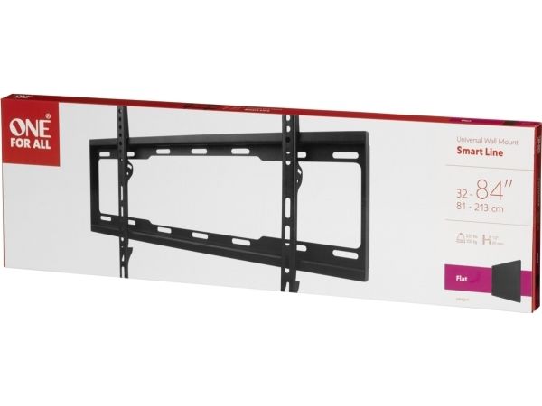 Detta TV-fäste från One For All passar till TV-apparater i storlekarna 32?90 tum och är kompatibelt med följande VESA-storlekar: 200x200, 300x200, 300x300, 400x200, 400x300, 400x400, 600x400. VESA är en standard för avståndet mellan hålen på TV-apparatens baksida. Du bör kontrollera vilken VESA-storlek din TV har för att säkerställa kompatibiliteten. Minsta möjliga väggavstånd är bara 25 mm. Du kommer inte ens att märka att fästet finns där! Allt monteringsmaterial för en snabb och enkel installation medföljer i leveransen. Du kan även ladda ner den praktiska One For All-appen. Den innehåller verktyg som till exempel vattenpass och ficklampa, så att installationen blir snabb och enkel. Finns för både IOS och Android. TV-fästena från One For All fungerar med alla sorters TV-apparater av alla märken.