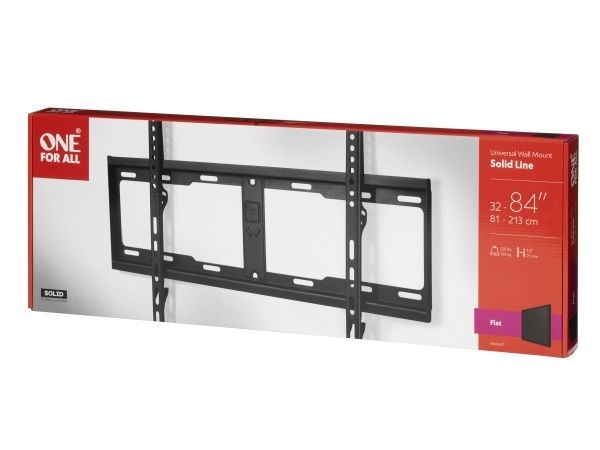 One For All SOLID WM 4611 väggfäste erbjuder en lågprofillösning för att fästa plattskärmar från 32 till 84 tum. Med en robust design som klarar en maximal lastvikt på 100 kg är detta fäste perfekt för olika miljöer, oavsett om det är hemma eller i en kontorsmiljö. Dess mångsidighet framhävs av flera gränssnitt för plattskärmsfästen, inklusive storlekar från 100 x 100 mm upp till 600 x 400 mm, vilket ger en säker passform för många skärmtyper av olika märken.