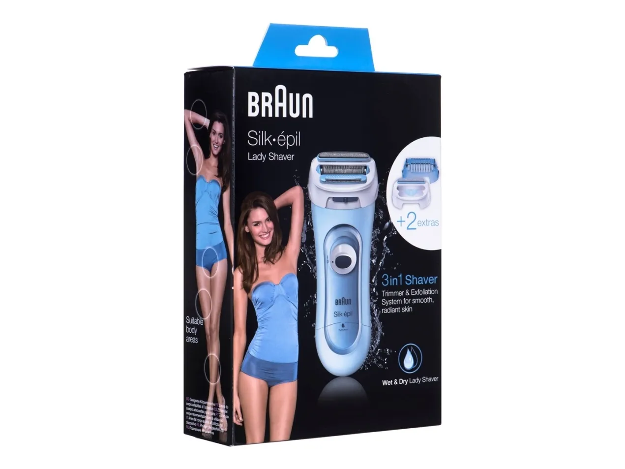 Braun Silk-épil lady shaver offers you an extra close shave for your total body. Its double-care technology with the unique exfoliation attachment revitalises the skin as you shave, for a smooth, radiant appearance. The smooth rounded gliding head is specially designed for the contours of the female body. The combination of a floating foil and long hair trimmer system guarantees extra close shaving results. You can shave your legs and even sensitive areas like the underarms and bikini line quickly and conveniently.\n\nSilk-épil’s promise for gentle shaving\nWith tailored features to make electric shaving more comfortable.\n\nDouble-care technology\nWhile shaving, the unique exfoliation attachment revitalises the skin for a smooth, radiant appearance.\n\nPerfect adaptability\nRounded head gently adapts to body contours.\n\nExtra gentle\nRounded trimmer tips smoothly glide on the skin.\n\nMaximum thoroughness\nThe floating foil and trimmer ensure a perfectly close shave.\n\nWet & dry\nUse in the bath or shower for ultra convenience (only LS 5160).\n\nFully washable\nFor convenient cleaning under water.\n\nPerfect bikini zone\nGently shape your bikini zone with the Bikinitrim attachment.