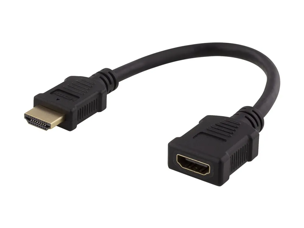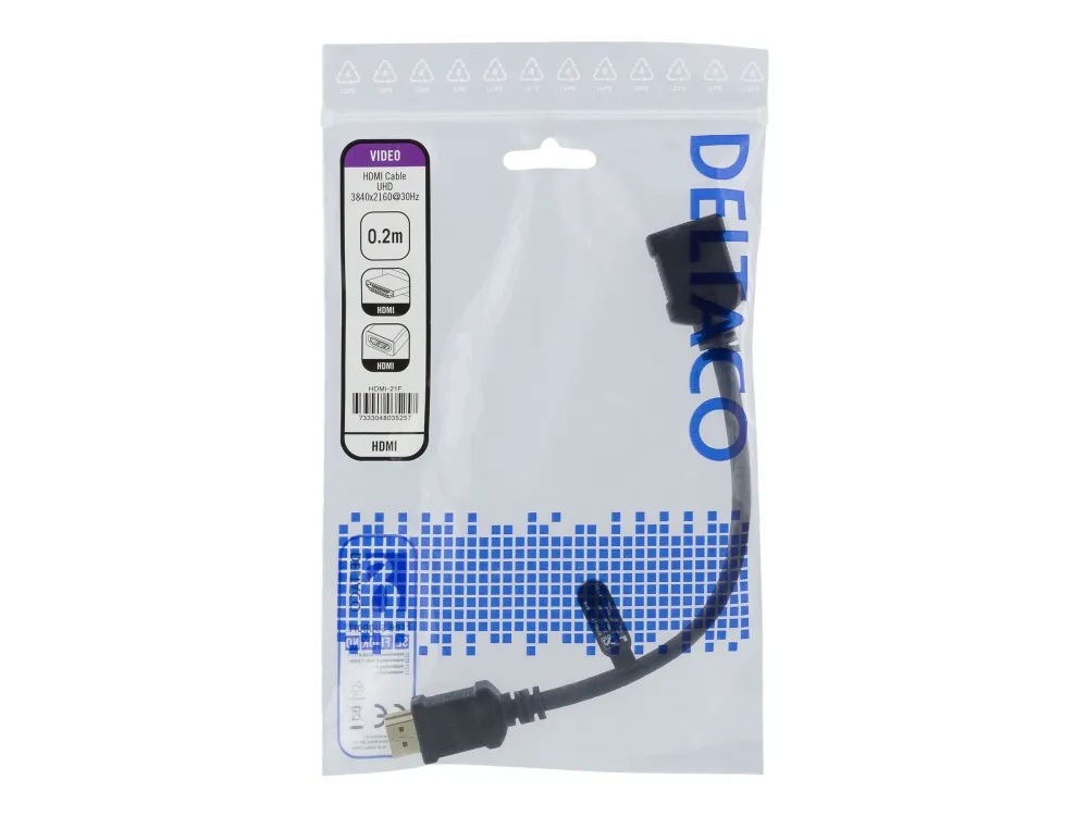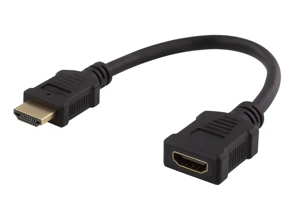 DELTACO HDMI-21F - HDMI-förlängningsadapter - HDMI hona till HDMI hane - 20 cm - svart
