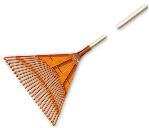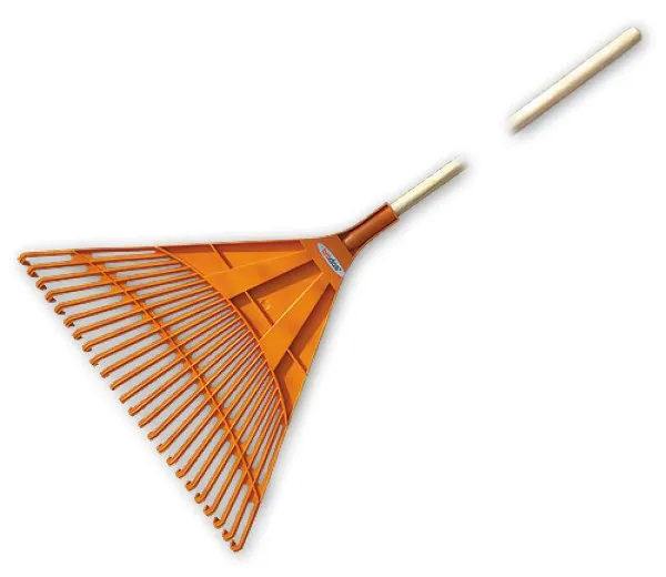 24-tine leaf rake made of high quality plastic. The head has threaded ending in order to set up the wooden handle. Assigned for raking up leaves and small grass.