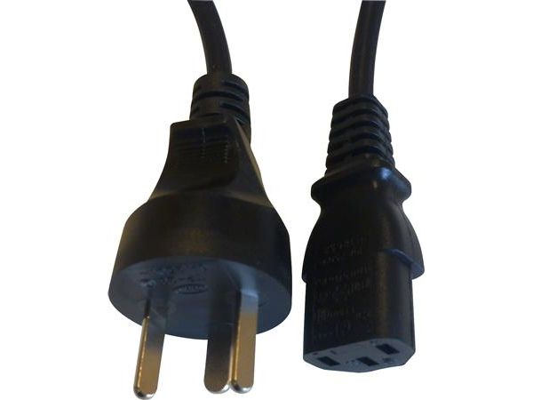 Nätkabel 240 VAC med DK EDB-stick - C13 apparatkontakt, längd 1,8 m, svart