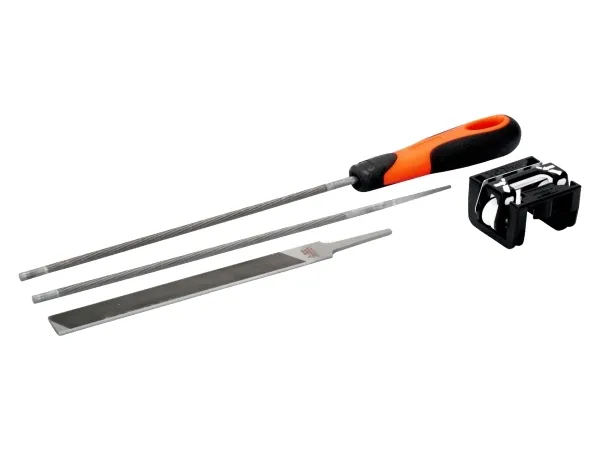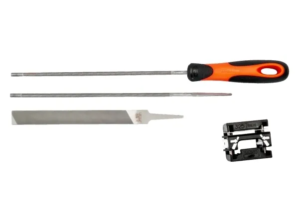 filhjälpEn fil har förberetts i samband med ERGO™-processen. Kombinationset med 2 runda kedjesågsfilar. Setet innehåller även en platt 6-kedjesågsfil. Med filhjälp kan du uppnå bästa möjliga filningsresultat med både runda och platta filer.