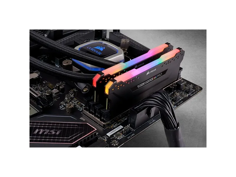 Dubbelkanalig, anodized aluminum heatspreader, Intel Extreme Memory Profiles (XMP 2.0), stöd för MSI Mystic Light RGB, dynamiska RGB-effekter, dynamisk multizon RGB belysning, Corsair iCUE stöd, Stöd för Gigabyte RGB-fusion, ej buffrad