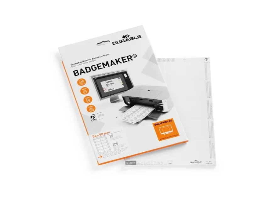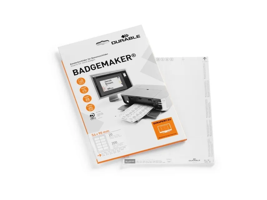 Slitstarka BADGEMAKER® namninsatser för namnbrickor 54x90 mm - (20 ark med 10 st.)