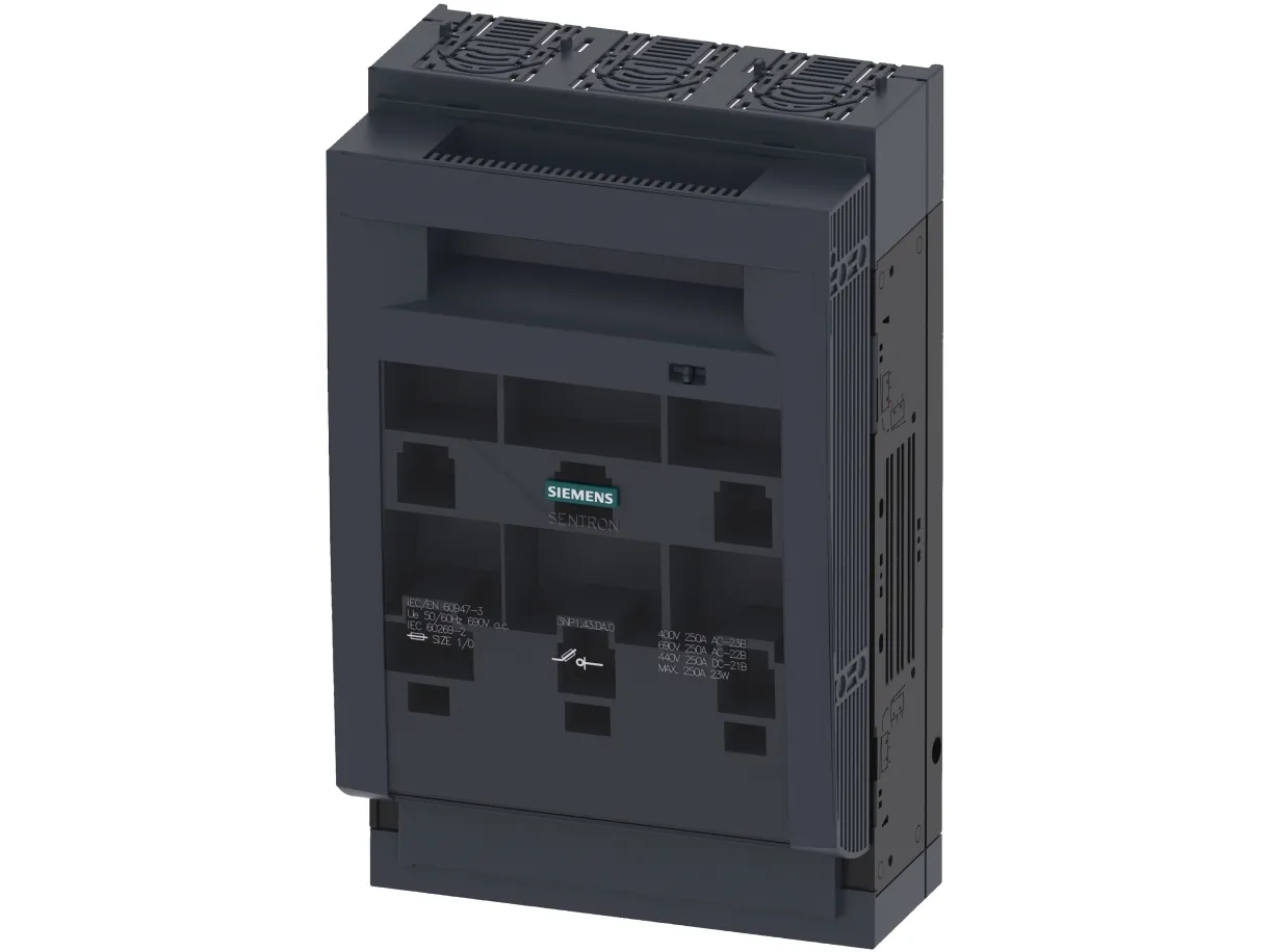 Sikringslastafbryder 3NP1, 3-polet, NH1, 250 A, til opbygning og montering ... SENTRON., lastskilleafbryder 3NP1, 3-polet, NH1, 250 A, Til opbygning og montering på monteringsplade, flad tilslutning, afdækningsplan 70 mm sikringslastafbryder 3NP til 630 A med forbedret person- og anlægsbeskyttelse og komfortabel tilslutningsteknik. Sikringsbelastningskontakten beskytter anlæg i industrien eller infrastrukturen mod overbelastning og kortslutning og er egnet til anvendelse i flere sektorer. Den standardmæssigt medfølgende omslutnings- og berøringsbeskyttelse af den nye SENTRON.-serie 3NP1 forhindrer brugeren ved montering af kollektive skinnesystemer strømførende dele, selv ved adgang på bagsiden. Desuden kan brugeren nemt registrere de anvendte sikringer med den store rude. Siemens sikrings-lastskilleafbryderen 3NP udmærker sig især ved: 1. Meget fleksibel pga. modulopbygning og gennemgående tilbehør. 2. Egnet til fastgørelse på jorden, din-skinne og Siemens samleskinnesystemer 8US 3. Elektroni
