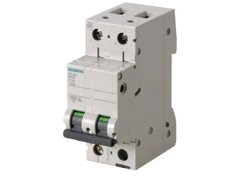 SIEMENS Strömbrytare, MCB 10A C-karaktäristik, 1 pol + neutral, 6kA kortslutningsbrytförmåga, 230V AC, 60V DC, 36mm bred
