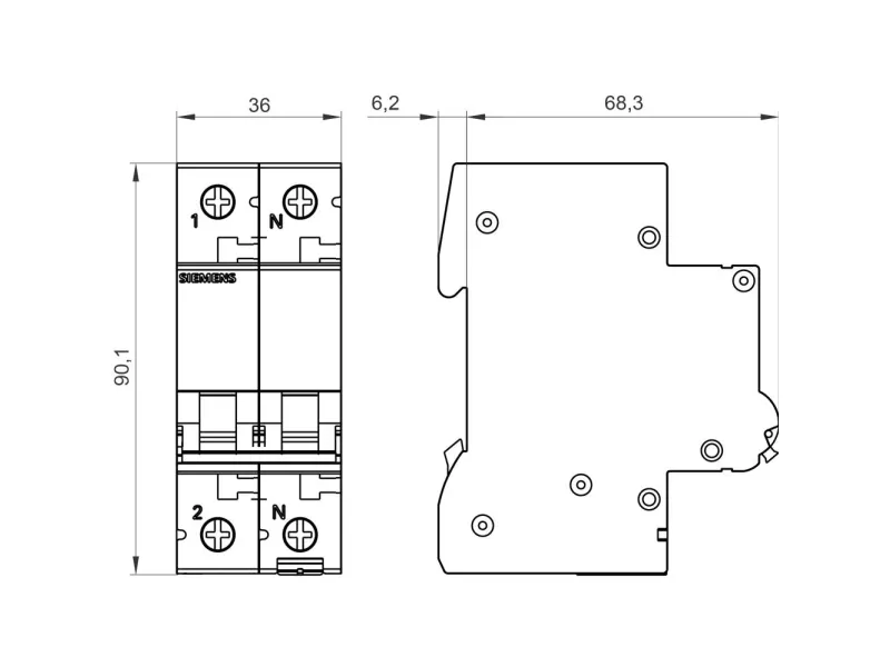 Siemens brytare 5SL6516-7 C16A 1+Npolig 6kALed Brytare