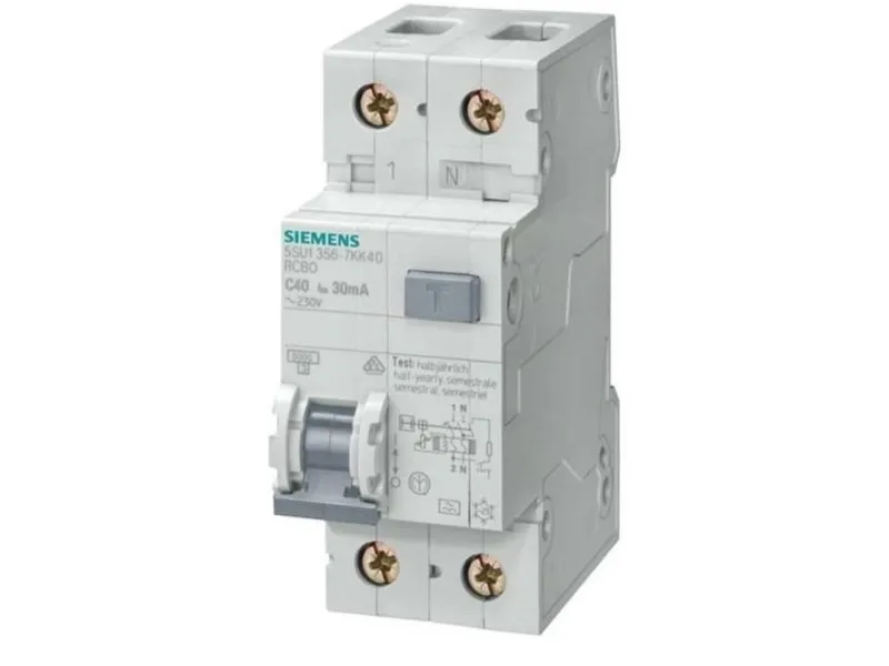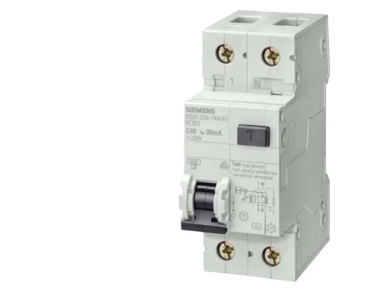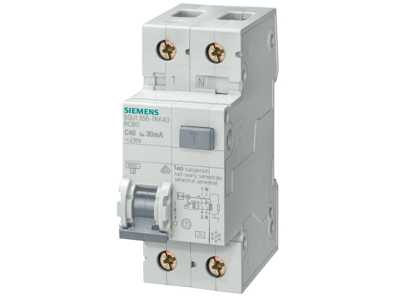 FI/LS-kontakt, 6 kA, 1P+N, type A, 30 mA, B-Char, in: 6 A, UN AC: 230 V. FI/LS-kontakt, 6 kA, 1P+N, type A, 30 mA, C-Char, i: 6 A, Un AC: 230 V FI/LS til kombineret kortslutningsbeskyttelse og beskyttelse mod berøring. Den patenterede FI/LS-kontakt fra Siemens - som vigtig del af SENTRON. Beskyttelsesenhederne til el-installationen muliggør en kombineret personbeskyttelse, brandsikring og ledningsbeskyttelse i ét apparat. Udover registrering af fejlstrømme giver de takket være den integrerede overstrømsbeskyttelsesopsætning også pålidelig beskyttelse mod kortslutning og overbelastning. Siemens FI/LS-kontakterne som kombination af fejlstrøms- og ledningsbeskyttelseskontakt udmærker sig især ved: 1. Øget driftssikkerhed og systemtilgængelighed takket være separat frakobling af det berørte kredsløb. 2. Om det er sinusformede skiftefejlstrømme eller glatte jævnfejlstrømme - Siemens giver den passende type samt specielle udførelser til alle krav. 3. Pålidelig sikkerhed ved installation takket