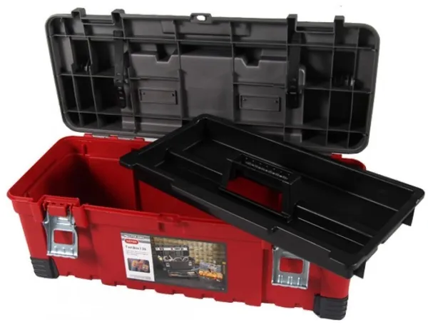 26” hawk with organizer The Sliding Tool Chest is a great choice for professionals looking for a compact and mobile chest that can hold various types of tools, both large and small . An integrated organizer with six removable bins offers plenty of space for small parts, while the hand tool compartment with a divider is perfect for small hand tools . The chest opens horizontally on ball bearing slides, and can be transported anywhere easily thanks to the rubber wheels and the handle with a soft grip.Keter 237784. Case type: Hard shell case. Weight: 3.85 kg. Product colour: Black