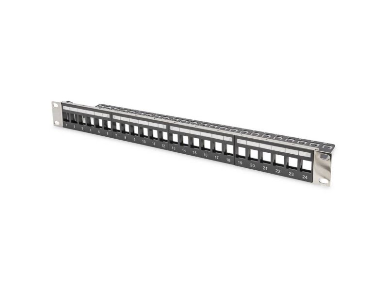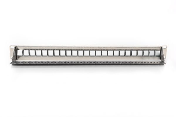 DIGITUS modular patch panel are specially designed for 19" rack installation and for mounting DIGITUS keystone jacks. The body material is SPCC, 155 m cold tollrf C-steel in compliance with JIS G3141-1996. The front part of the modular patch panel is manufactured of ABS High-Impact UL-94V-0. The rear management tray with special designed cable tie positions, is delivered as snapping in tool for simple installation. An earthing kit is also supplied with the modular patch panel.