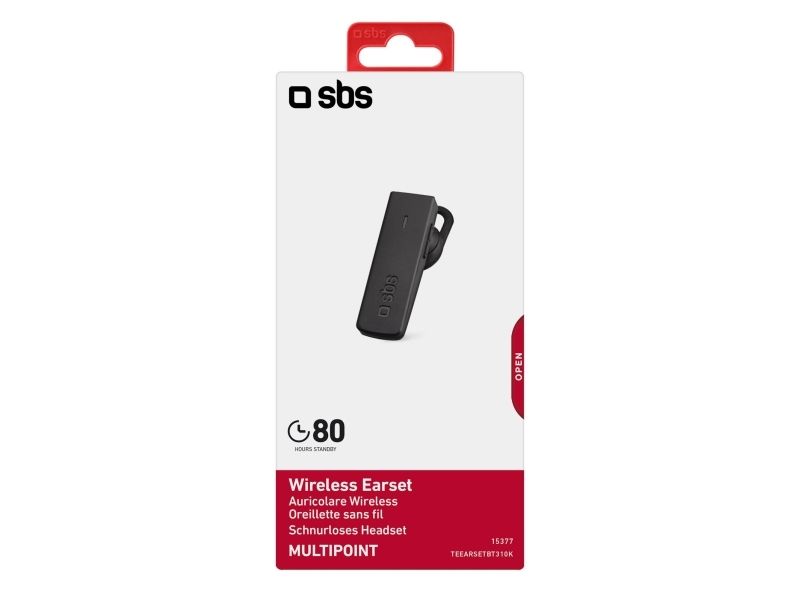 SBS TEEARSETBT310K, Trådlös, Samtal/musik, 6 g, Headset, Svart