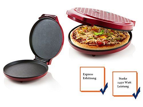 Versatile kitchen appliance: -Ideal for fresh or frozen pizzas, omelettes, pancakes, quiche, tortillas, etc. -Leave the lid open and you can use the bottom plate as a baking tray. -Bake a pizza in 12 minutes. -Diameter: 30 cm. -High quality non-stick coating. -2 heating elements ensure proper distribution of heat. -Indicator light for on/off and ready for use. -Easy to use. -Easy to clean.