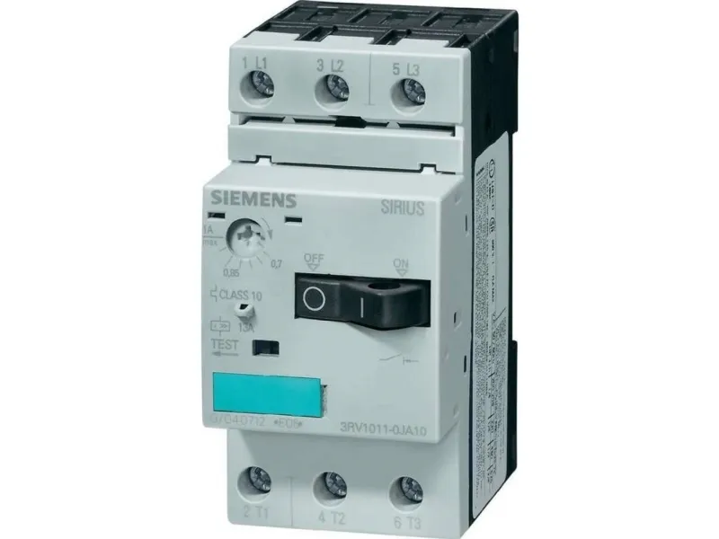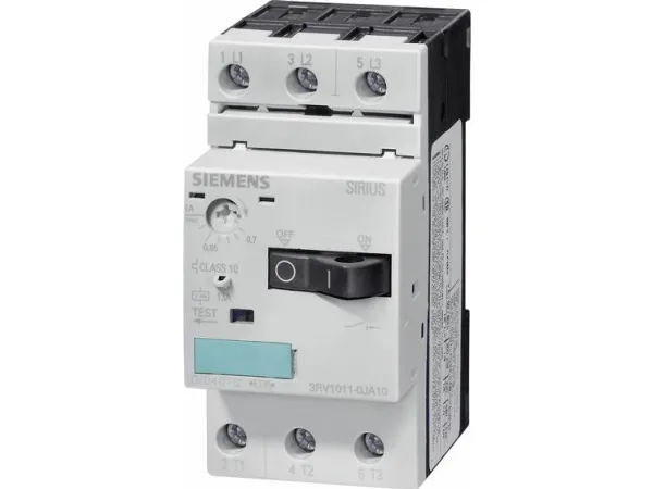 Effektafbryder størrelse S00 til motorværn, KLASSE 10 A-udløser 7...10 A N-udløser 130 A skruetilslutning standardbrydeevne effektafbryder SIRIUS 3RV1 til sikker frakobling ved kortslutning og beskyttelse af forbrugere og anlæg mod overbelastning samt til sikker adskillelse af anlægget fra nettet.