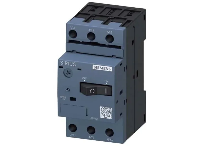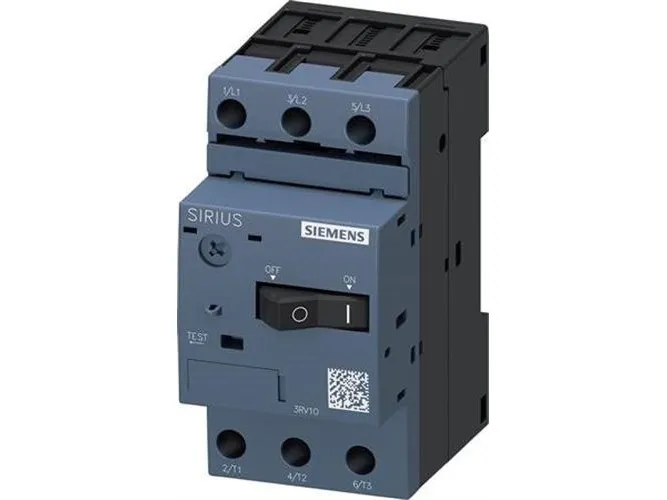 Siemens 3RV1011-1JA10 Strömbrytare 1 st 3 x strömbrytare Inställningsområde (ström): 7 - 10 A Kopplingsspänning (max.): 690 V/AC (B x H x D) 45 x 90 x 81 mm