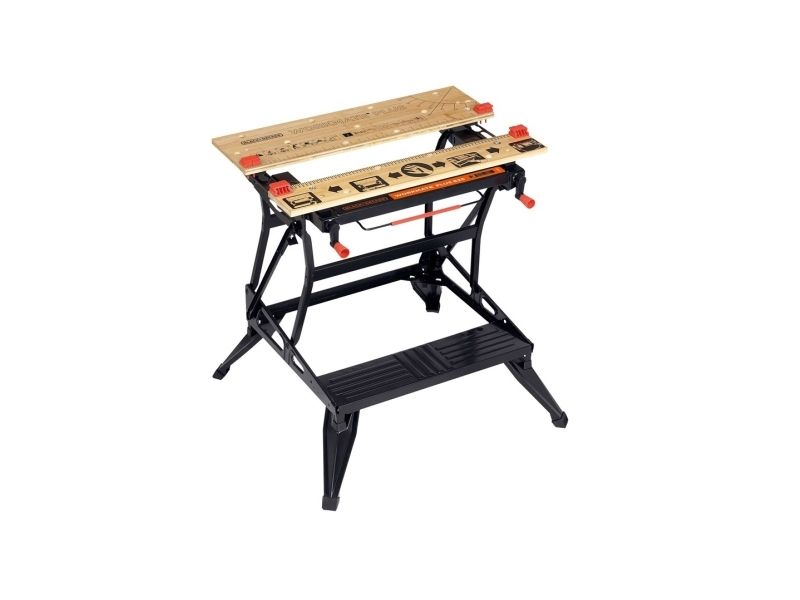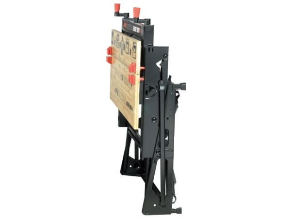- Exclusive, advanced one-handed clamp system allows clamps to be adjusted together or independently - Front jaw swings up for vertical clamping, increasing flexibility to clamp odd-shaped objects - Dual working heights allows use as a workbench, bench tool stand, vice, or sawhorse - Heavyweight steel construction allows support of 250kg - Folding frame for compact storage and easy transport - Dual clamping cranks increase clamping force and versatility - Adjustable swivel pegs and jaw retention grooves provide clamping versatility and reliable material hold - Designed for easy set-up and clean-up - Rubber feet are anti-slip - 3 vice jaw positions for versatility