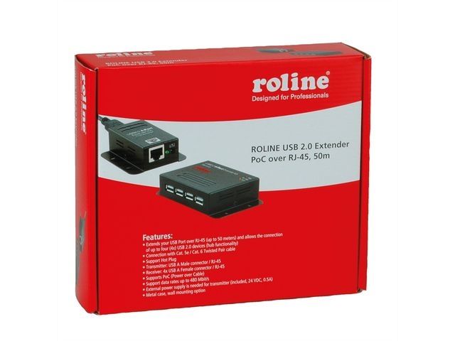 Roline USB 2.0-förlängare via RJ45, 4x USB, max 50 m