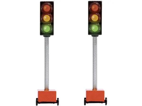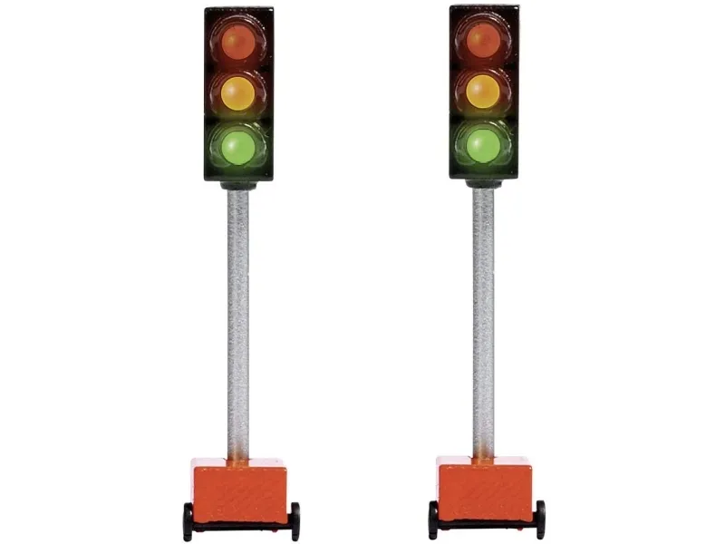 trafikljus för byggarbetsplatserTvå trafikljus för byggarbetsplatser med lysdioder i grönt, gult och rött. Kontinuerlig drift, manuell omkoppling med strömbrytare eller realistisk automatisk styrning i samband med Busch ljusstyrningsmodul.