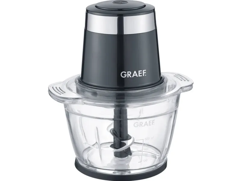 Graef hakker, sortMed fire klinger i rustfrit stål arbejder hakkeren CH 500 (fås i sort og hvid) særdeles hurtigt og effektivt.