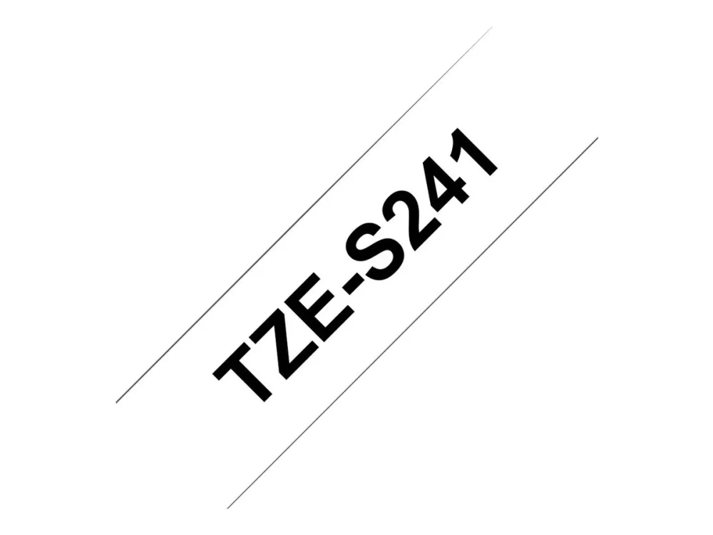 Brother TZe-S241 - Extrastark häftning - svart på vitt - Rulle (1,8 cm x 8 m) 1 kassett(er) bandlaminat - för Brother PT-D600; P-Touch PT-1880, D450, D800, E550, P750, P900, P950; P-Touch EDGE PT-P750