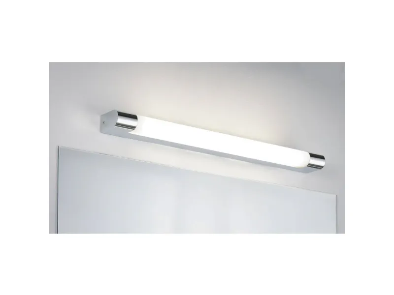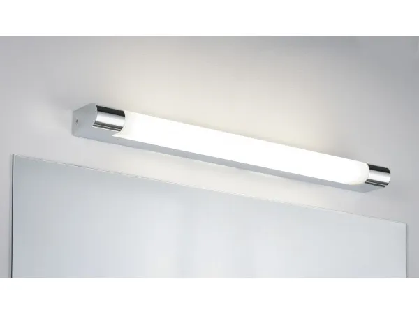 Clear lines and harmoniously rounded chrome end caps give the mirror luminaire Mizar its timelessly elegant look. It features IP44 splash protection, which makes it a great choice for the bathroom or wet room. A non-replaceable LED lamp with 10.5W output is included in the scope of delivery.