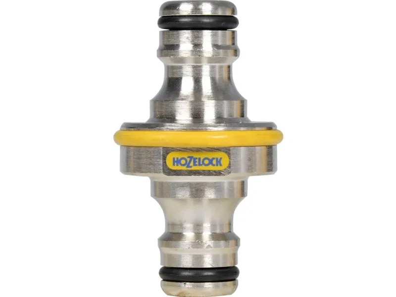 Metal double ended male connector allowing two lengths of hose equipped with female connectors to be joined together. Made from Nickel Plated Brass which ensures a strong and durable connection.\nScratch and frost resistant the Metal Double Male End Pro Connector comes with a 3 year guarantee.